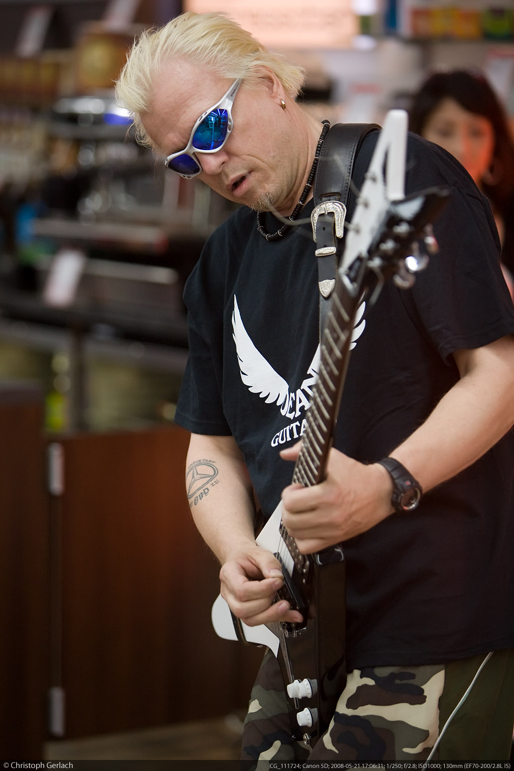 And I love UFO too! Even without Schenker! Well, UFO with Schenker is the best. Michael Schenker and UFO wrote "the soundtrack of my life". I learned to play guitar myself, listened to this music many many many times, for entertainment, relaxation, meditation, compensate frustration. I traveled to see concerts, I got to know great people. My top tracks are: 1. Rock Bottom And the top records: 1. Strangers In The Night (surprise...) In 2000 I was lucky to see UFO with Michael Schenker three times and I was also able to take pictures at one of the concerts. You find the review of the show along with some pictures here. |